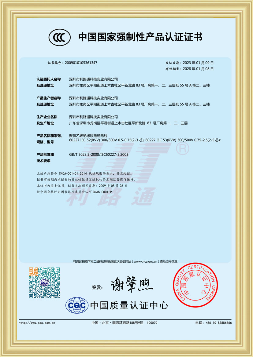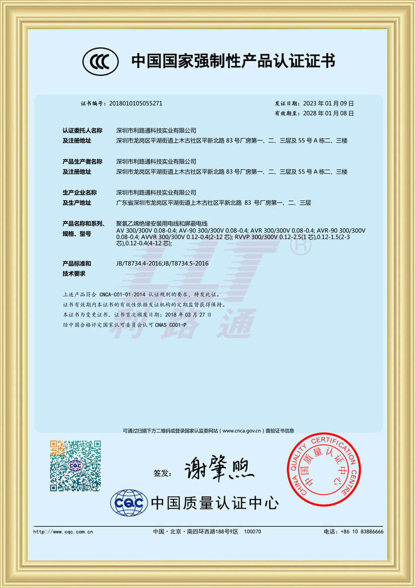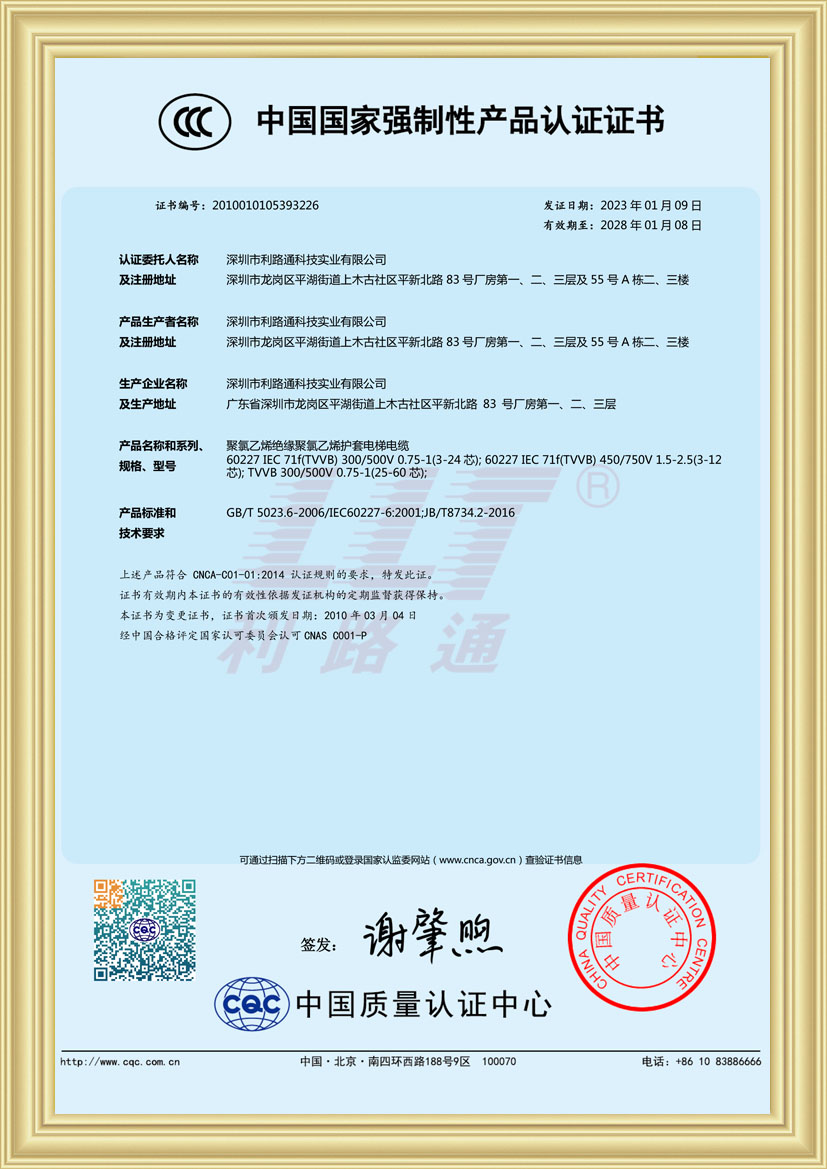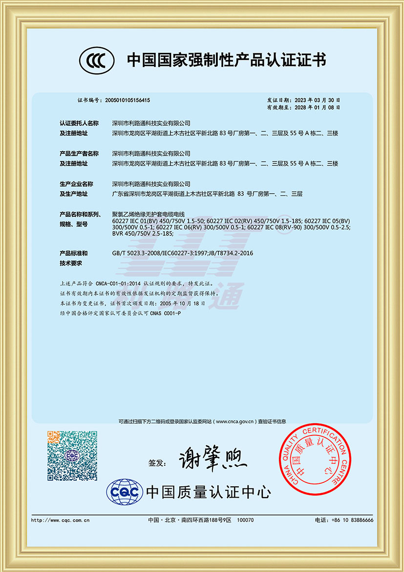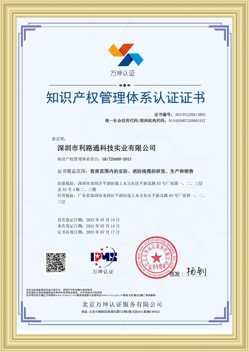 深圳市利路通科技實業(yè)有限公司成立于2001年,是一家主要從事防火線纜、硅膠線纜、橡膠線纜、低煙無鹵線纜、通訊線纜、漂浮線纜、耐寒線纜、控制線纜、柔性線纜、電梯線纜、機器人線纜、新能源專用線纜、光纖綜合線等全系列電線電纜的產(chǎn)品設計、研發(fā)、生產(chǎn)、銷售、工程方案銷售服務的綜合性企業(yè),產(chǎn)品廣泛應用于消防與安防,通訊,新能源,太陽能,高層樓宇,軌道交通,橋梁,工業(yè)4.0設備,船舶,航空,軍工等領域并榮獲深圳高新技術企業(yè)、全國守合同重信用企業(yè)、深圳市愛心企業(yè)、深圳市消防安防百強企業(yè)、電線電纜協(xié)會理事會單位、國家一級計量體系合格企業(yè)、中國優(yōu)秀民營科技企業(yè)。
